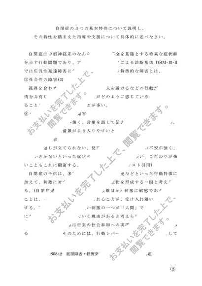 佛教大学S0842重複障害・軽度発達障害児の指導法 第二設題