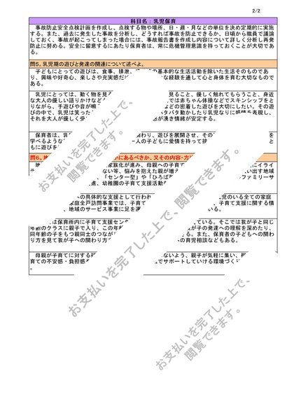 【乳児保育】単位修得試験解答案6問分、大阪芸術短期大学通信保育科、NJ09~18対応、H25年11月10日受験、評価【A優】