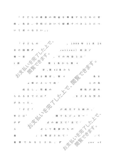 子どもの最善の利益を尊重するために家庭、社会、学校において配慮すべきことについて述べなさい