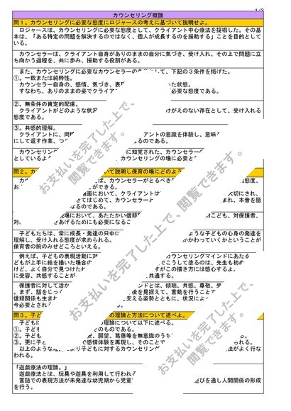 【カウンセリング概論】単位修得試験解答案6問分、大阪芸術短期大学通信保育科、NJ06~NJ14対応、H25年12月受験、評価【B良】