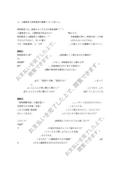 S0536 人権(同和)教育 小1免 科目最終試験 試験対策 6題セット