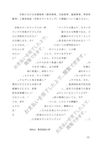 【2013年度】教育相談の研究(中・高) 第1設題