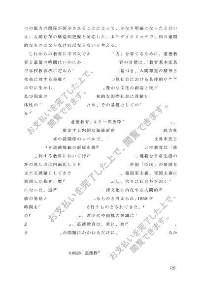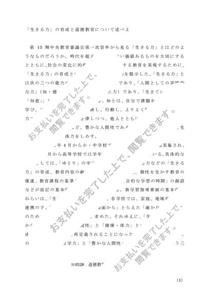 佛教大学 道徳教育の研究 S0528 レポート 合格 A判定 2015 2016
