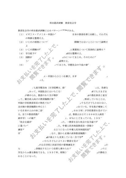 佛教大学 教育社会学 S0532 科目最終試験 合格 全6パターン 2016 2017