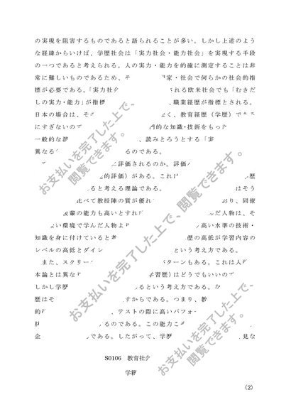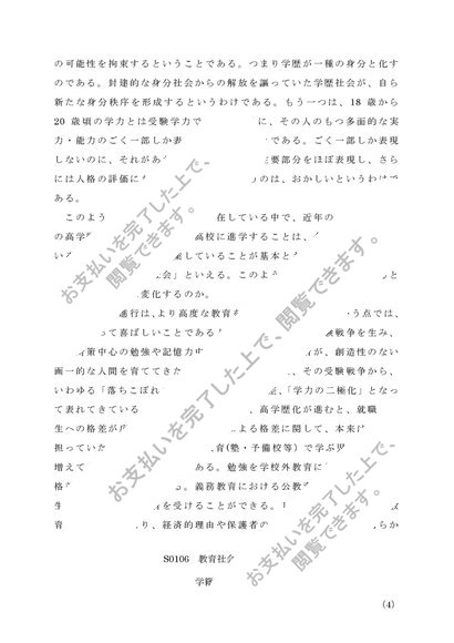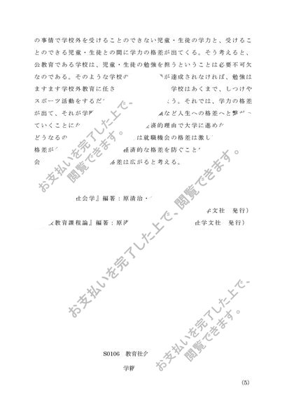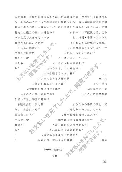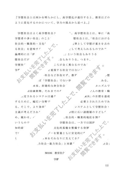 S0106 教育社会学 第1設題(2013年度)A評価リポート【佛教大学】