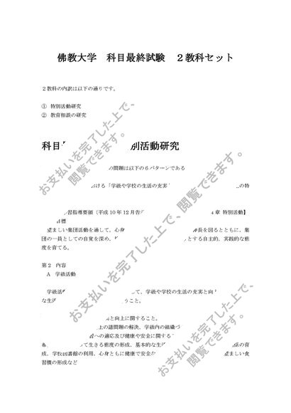 佛教大学 科目最終試験 2教科セット 2016 2017 特別活動研究 学校教育職入門