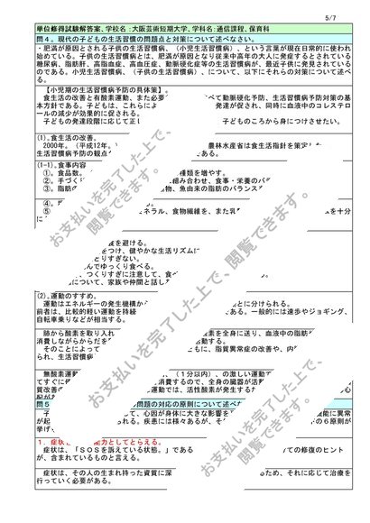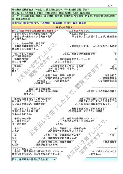 子どもの保健 I 、単位試験解答案、大阪芸短、受験日:平成26年1月、成績:B(良)、NJ13~NJ16対応