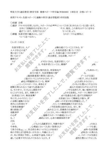 <2013~2016年課題>明星大学(通信教育)教育学部 健康・スポーツ科学論(WB1010)1単位目 合格レポート