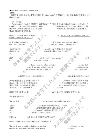 【日大通信】0086 英米文学概説 分冊1 合格レポート(H25-26年度課題)