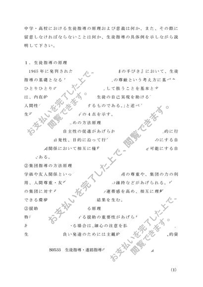 【A判定レポート】S0533_生徒指導・進路指導の研究(中・高)【2014同設題】【佛教大学】【2013】
