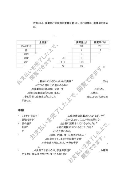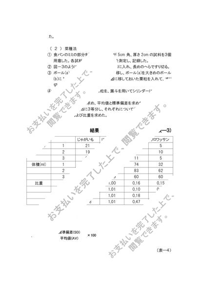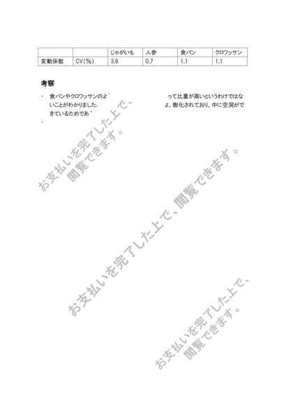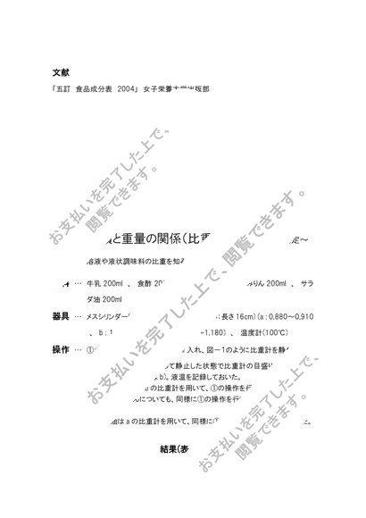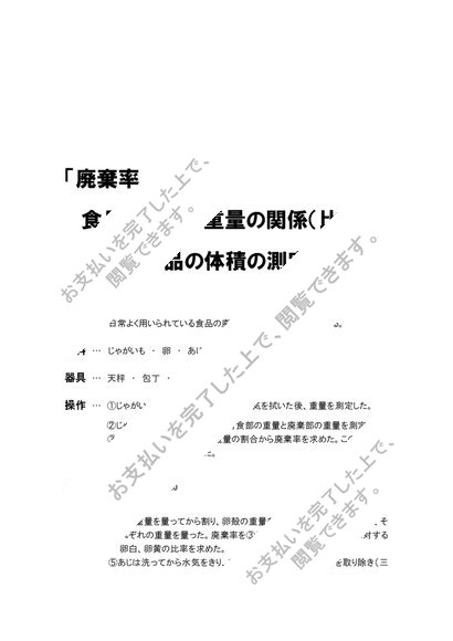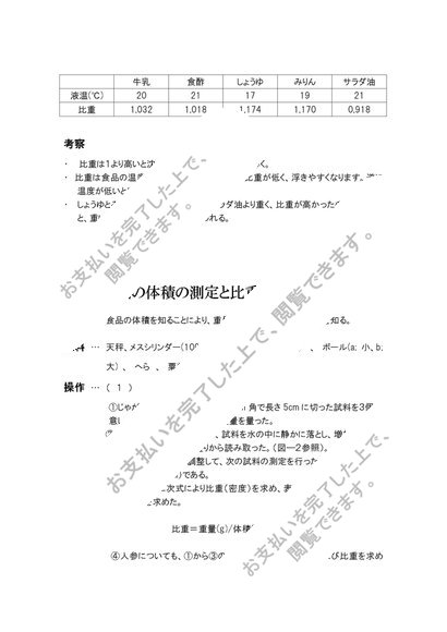 廃棄率食品の体積と重量の関係(比重)固形食品の体積の測定と比重