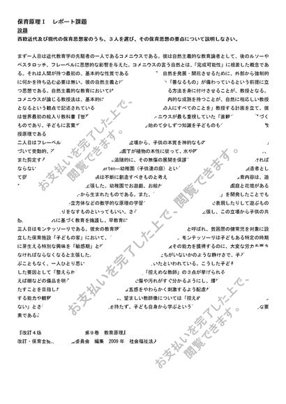 【保育原理Ⅰ】西欧近代及び現代の保育思想家のうち、3人を選び、その保育思想の要点について説明しなさい。