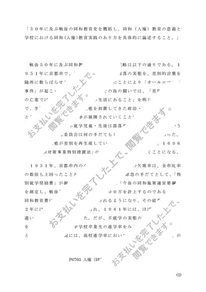【最新レポート】 P6703 人権(同和)教育◎合格