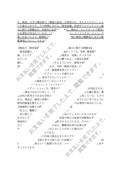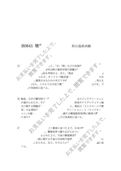 佛教大学 S0841聴覚障害教育総論 試験6題x解答
