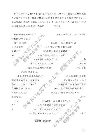 Q0707経済学概論第1設題