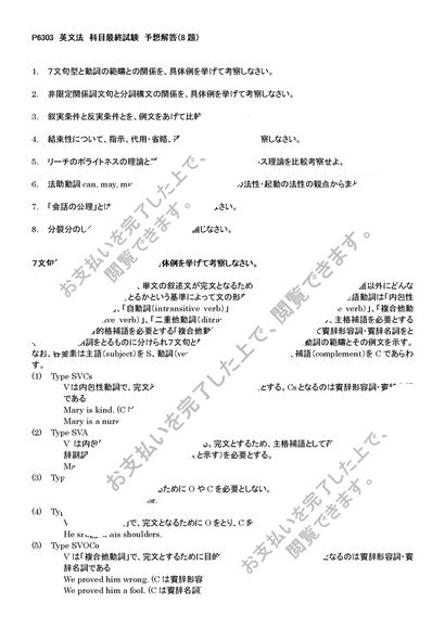 P6303 英文法 科目最終試験 予想解答集(8題)