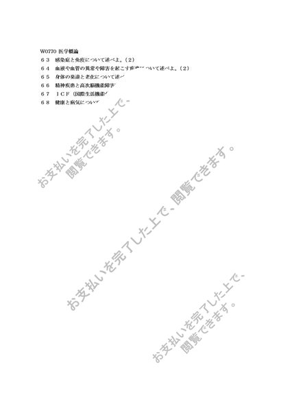W0770 医学概論 科目最終試験(2014年度)