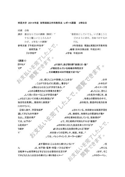[2014][明星大学]初等図画工作科教育法 合格レポート 2単位目