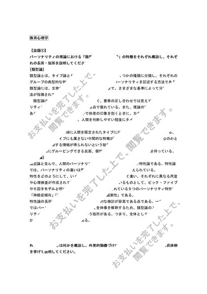 【教育心理学】3問セット①「類型論」と「特性論」②外発的動機づけとは③教育評価の客観的な道具(テスト)に求められる要件