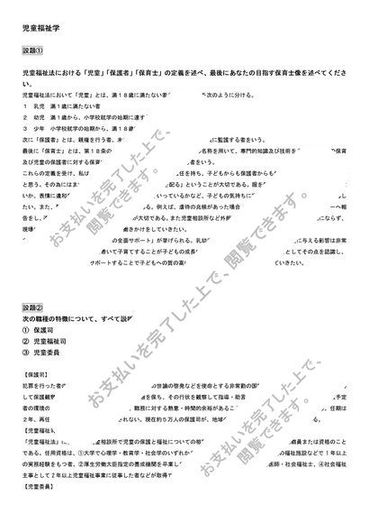 【児童福祉学】3問セット 児童福祉法における「児童」「保護者」「保育士」の定義を述べ最後にあなたの目指す保育士像を述べよ