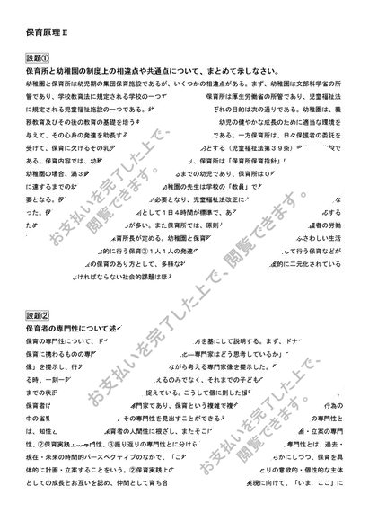 【保育原理Ⅱ】3問セット①保育所と幼稚園の制度上の相違点や共通点②保育者の専門性③健康保育・安全保育の意義と留意点