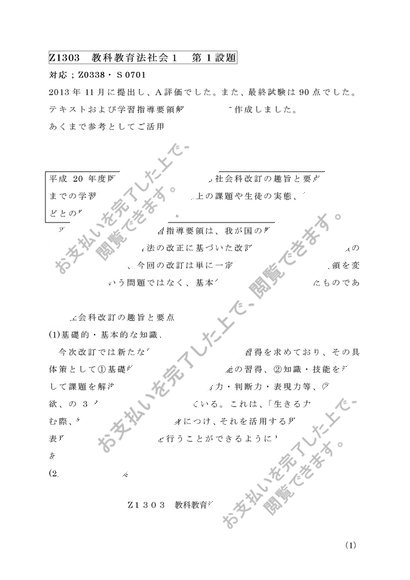 Z1303教科教育法社会1 第1設題 A評価(2013.11)