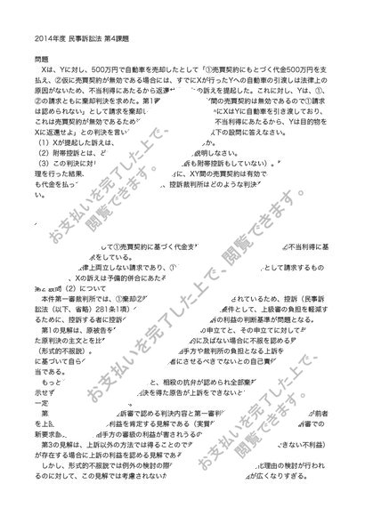 2014年中央大学通信レポート民事訴訟法第4課題