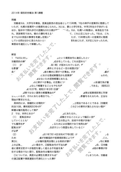 2014年中央大学通信レポート労働法(個別的労働法)第1課題
