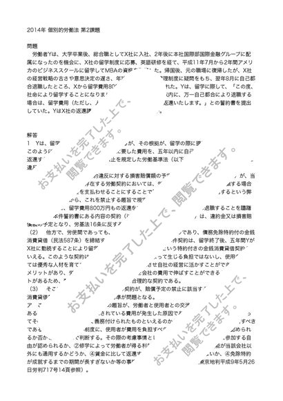2014年中央大学通信レポート労働法(個別的労働法)第2課題