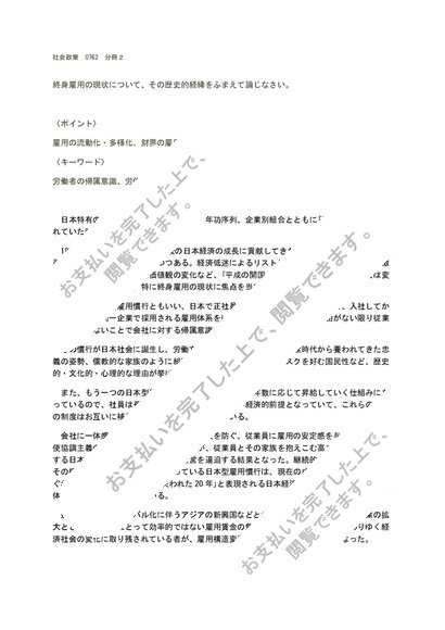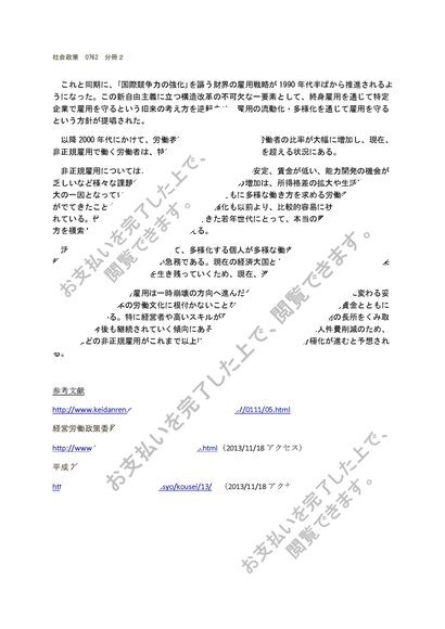 日大通信 【25・26年度】 社会政策 0762 分冊2 合格レポート