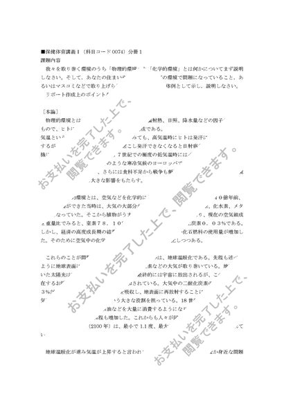 平成26、27年、日大通信、保健体育講義Ⅰ、合格レポート