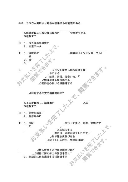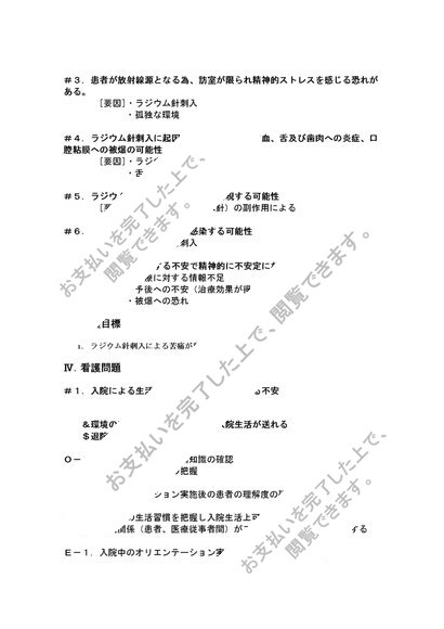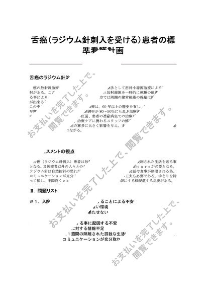 舌癌(ラジウム針刺入を受ける)患者の標準看護計1