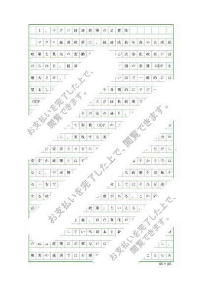 [日大通信]経済政策総論・経済政策 分冊2 合格レポート