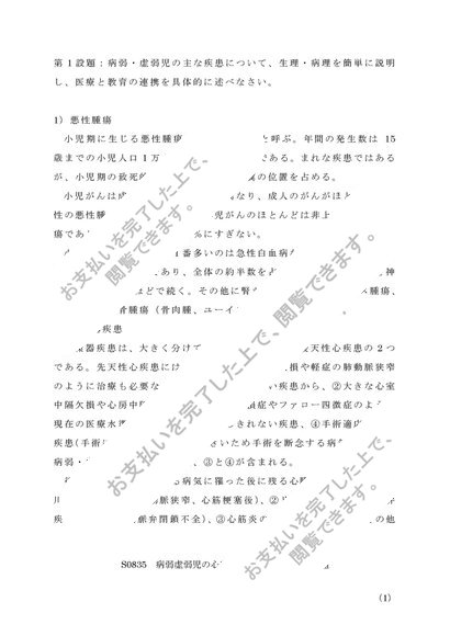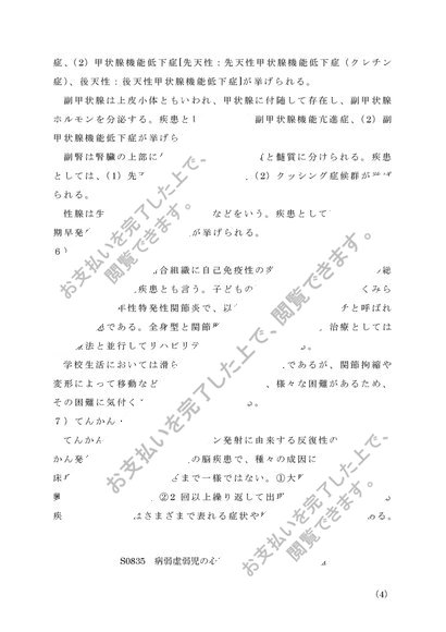 S0835 病弱虚弱児の心理・生理・病理
