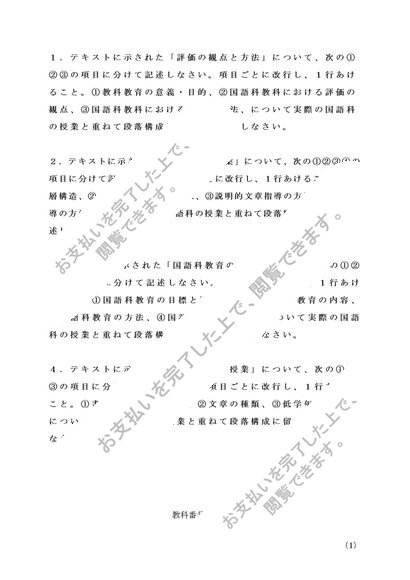 S0616国語科教育法 科目最終試験6題セット(合格済み)