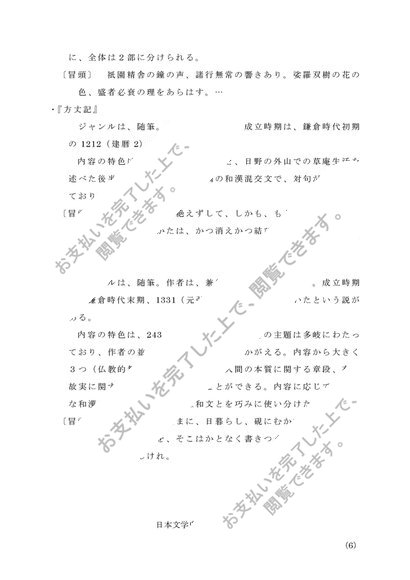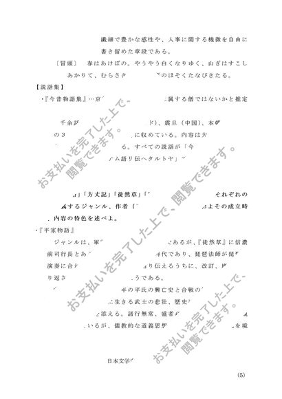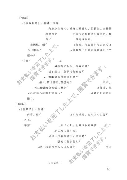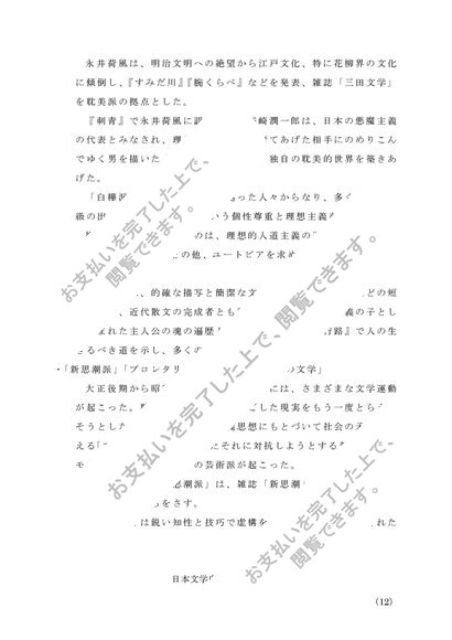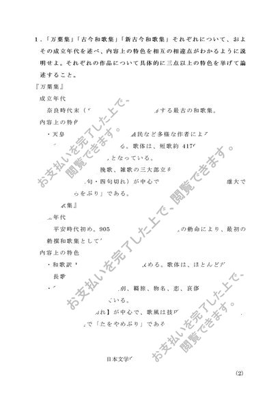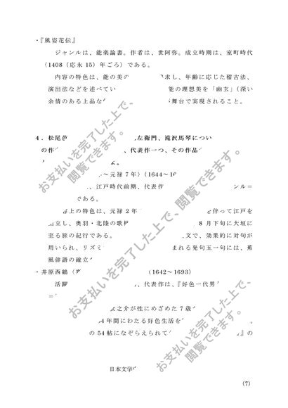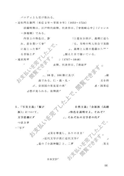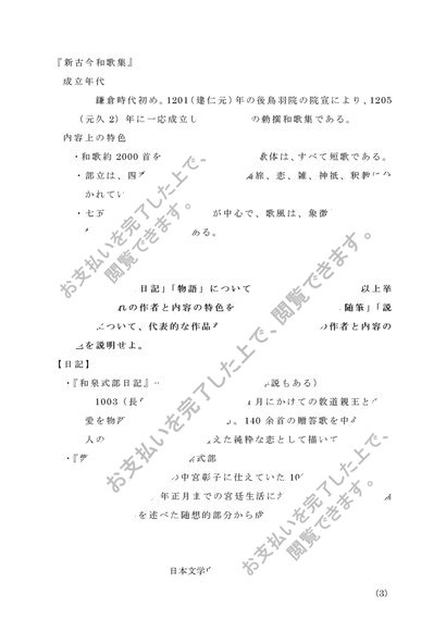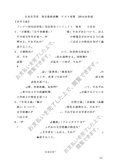 日本文学史 科目最終試験 テスト対策 2014,8作成 M6105 R0112