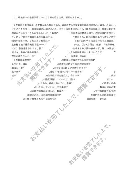 教育原理2単位目 明星大学 合格レポート 2022