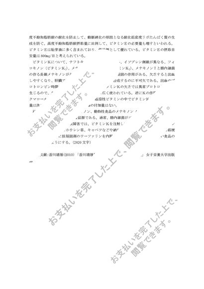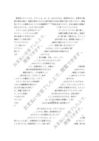 脂溶性ビタミンの生理作用と給源について述べなさい。(A判定・2020文字)