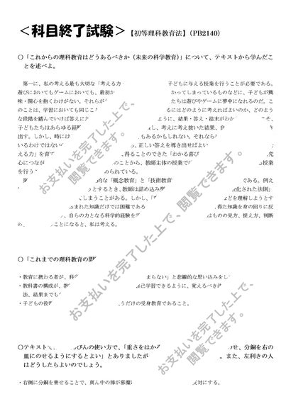 <2014>(明星大学)【初等理科教育法】[PB2140]科目終了試験対策