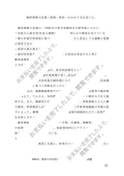 佛教大学 S0834肢体不自由児の心理・生理・病理 第一設題