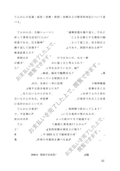 佛教大学 S0834肢体不自由児の心理・生理・病理 第二設題