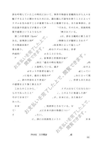 P6102 文学概論 (レポート第1設題&第2設題)