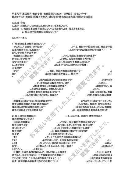 <2014~2016年課題>明星大学(通信教育)教育学部 教育原理(PA1020) 2単位目 合格レポート