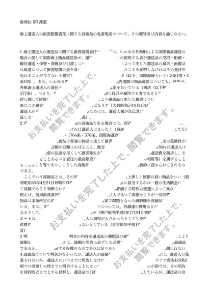 2014年中央大学通信レポート海商法第1課題