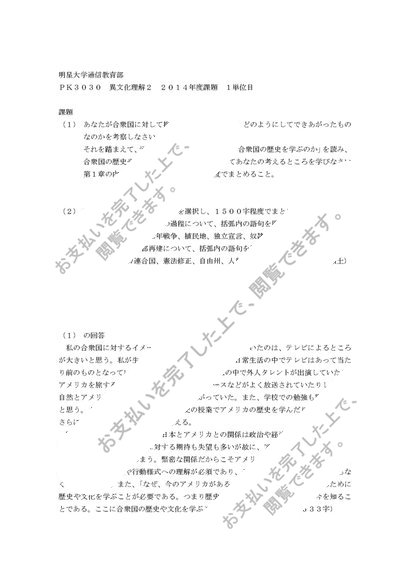 明星大学、異文化理解2、合格レポート、1単位目、2014年度課題