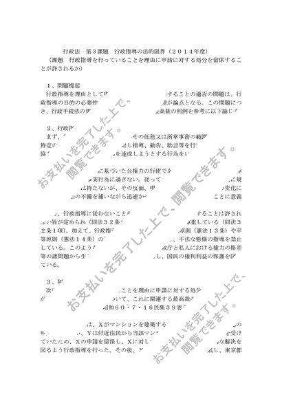 行政法 第3課題 行政指導の法的限界(2014年度)
