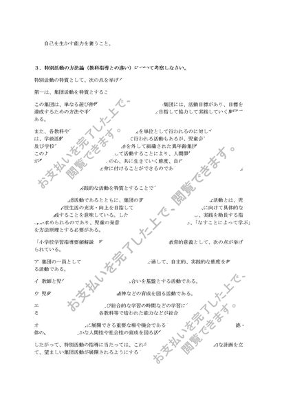 特別活動指導法 科目試験解答例