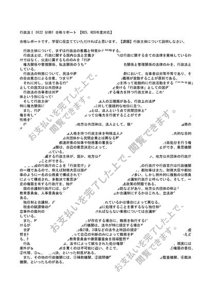 行政法Ⅰ 0122 分冊1 合格リポート 【H25,H26年度対応】
