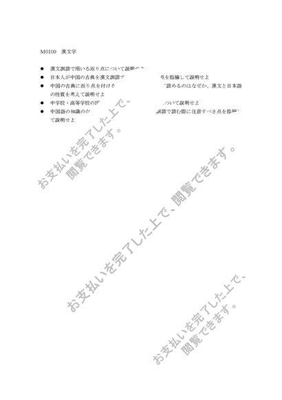 漢文学、科目最終試験5題セット、R0115、M6109、M8102、R8104