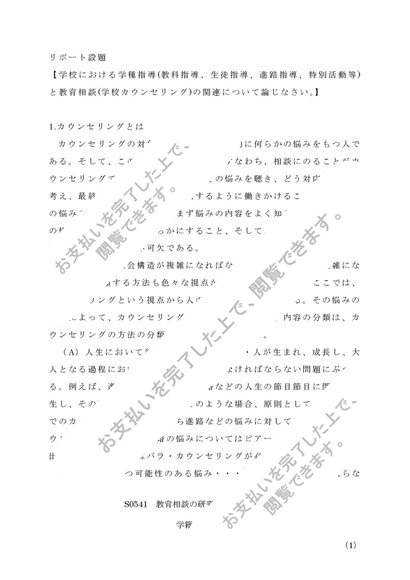 【佛教大学】【レポート】【2014年度】教育相談の研究(中・高)(A評価取得済み)